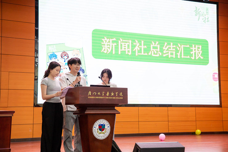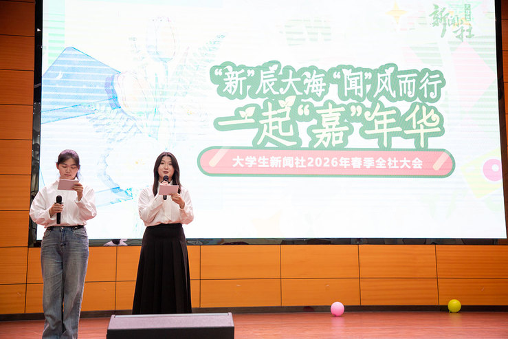 大会伊始,社长团队作学期工作汇报。他们全面梳理了新闻社八个部门上一阶段的工作成果,原创作品、运营情况、部门活动、粉丝反馈、部员心声……详实的数据和生动的影像共同勾勒出新闻社这个“有担当、有创意、有热爱”的组织形象,增进了各部门成员对新闻社大家庭的了解。