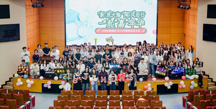 春风送暖,万物向新。4月15日中午,大学生新闻社2026年春季全社大会在公共教学楼1号楼101多功能厅举行。宣传部副部长、传媒中心主任彭欢,传媒中心副主任王小磊,学生新闻社全体指导老师及新老社员齐聚一堂,回望过往、表彰先进、互动联欢,共赴一场温暖而热烈的春日盛会。